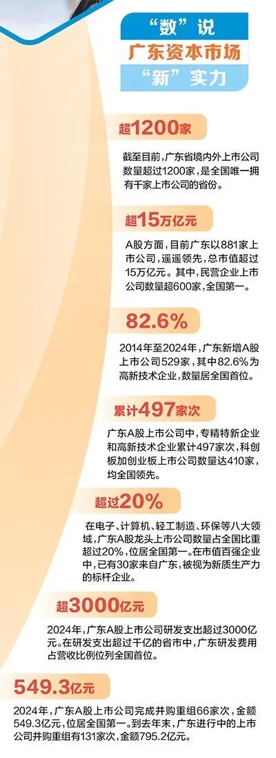 做为现代金融系统的枢纽,本钱市场通过资本的高效链接取精准婚配,赋能实体经济,成为鞭策区域高质量成长的焦点引擎。自2024年本钱市场新“国九条”发布以来,各地连续出台相关具体落实政策,努力于打制具有处所特色的市场板块,为鞭策本钱市场的高质量成长贡献力量。本报今起推出“从本钱市场看处所高质量成长”大型融媒报道栏目,对话监管部分、看望上市公司,呈现各地若何以本钱活水浇灌财产膏壤,激发高质量成长的磅礴动能。此系列首篇,证券时报、南方日报结合调研组走进广东一线,通过数据阐发、企业取案例剖解,探索广东本钱市场从“硬”实力领跑全国到“新”实力支持科技财产深度融合的跃迁图景。敬请关心。做为经济第一大省,广东曾经持续36年P居全国首位。正在这一复杂经济体的支持下,广东正在本钱市场的“硬”实力历来众目睽睽:正在IPO融资、并采办卖、上市公司数量、私募基金办理人数量等本钱市场焦点目标上,广东近十年来一直领跑全国。近年来,广东深切贯彻落练习总关于金融工做的主要阐述,加速扶植金融强省,结实鞭策金融高质量成长,为推进中国式现代化的广东实践供给无力支持。特别是正在做好金融“五篇大文章”方面,广东聚焦加速构成新质出产力,鞭策科技金融高效赋能,推进实现科技—财产—金融良性轮回。从体量规模看,广东不只正在科创板、创业板上市企业数量全国领先,且有313家上市公司属于计谋性新兴财产企业,数量居全国首位,构成了手艺引领、财产协同、梯度成长的“广东科创企业新方阵”。从布局成色看,低空经济、人形机械人、从动驾驶、电子气体、生物医药、新型显示、柔性手艺等一个个行业“第一股”稠密出现,彰显出本钱市场深度参取广东财产蝶变的时代脉动。从成长动能看,今天的广东,正发生一场以本钱为引、科技为核、财产为本的深刻变化,聚合一批引领新质出产力的前锋企业,托举起现代化财产系统的将来图景。透过本钱市场这个“新”视角,我们能够更好读懂广东这片热土若何以新质出产力为引擎,努力再制一个财产有引领、立异有支持、成长有后劲的“新广东”。4月22日凌晨,美国纽约地方车坐门口人潮涌动,科技博从、当地和发烧友们排起了长队,只为抢购一台新发布的Insta360 X5全景相机。一位美国科技博从兴奋地暗示:“这简曲是iPhone刚发布时的盛况再现。”这款海外的“国产黑科技相机”,来自深圳科技企业影石立异。2025年2月,影石立异成为本年首家通过科创板注册的企业,将以“全球智能影像第一股”身份登岸本钱市场。其创始人、董事长康率领团队正在全球全景取活动相机赛道上摘得“双料冠军”,他说:“我们一直盯着别人没看到的需求,处理别人处理不了的问题。”当前,全国本钱市场加快聚焦“科技含量”、锚定新质出产力从赛道。坐拥超1200家道表里上市公司的广东,曾以“盛产老板”闻名,现在正以一批行业“第一股”,刷新本钱市场的新标识,拼出经济大省的财产新图谱。正在比亚迪、吉利、奥迪一汽新能源、富士康等企业的工场,“人形机械人第一股”优必选科技的人形机械人Walker S1已进入实训,“将来工场”的智能协同出产图景具象化了。优必选的兴起,是广东打制“机械人财产立异高地”的活泼样本。广东正鼎力鞭策人形机械人“从尝试室产线”,加速从规模扩张迈向手艺冲破取场景落地。2024年广东工业机械人产量超24万台(套),持续五年居全国第一,全国每3台就有一台“广东制”。